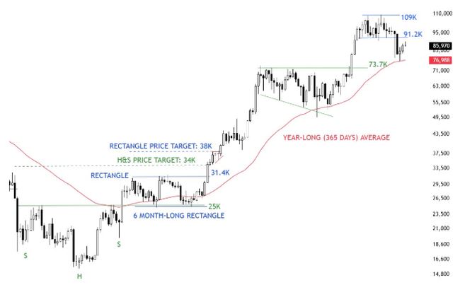 比特币价格展望:2025年目标13.8万美元,波动与支撑成焦点