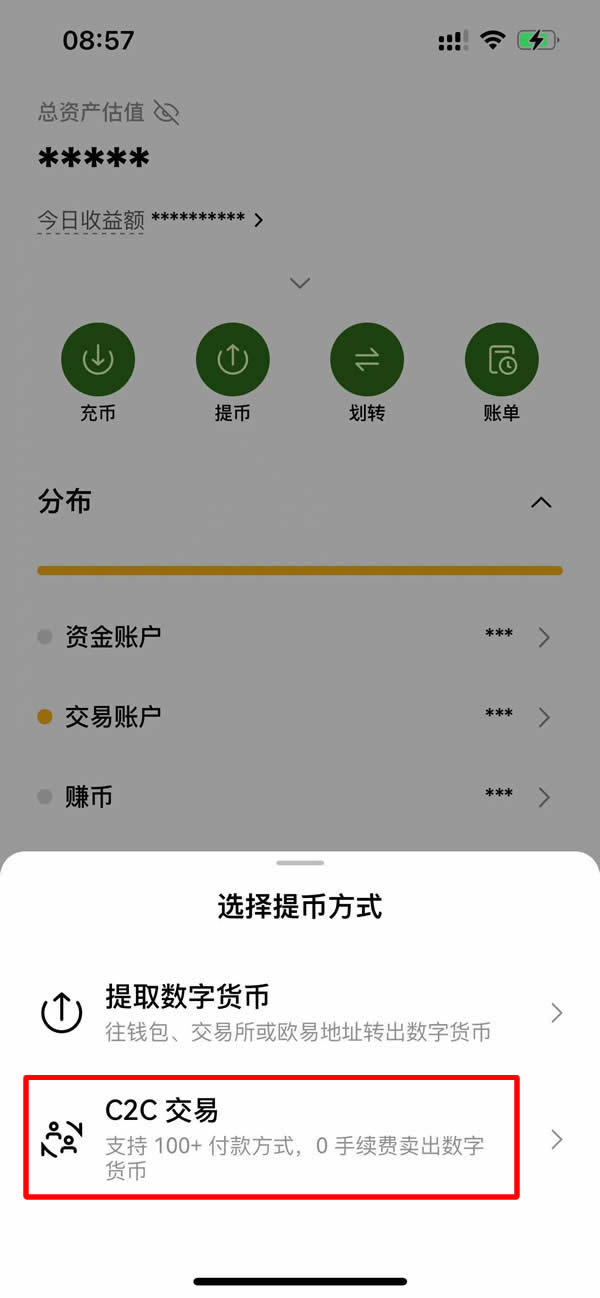 主流做法是在合规交易所将比特币兑换为USDT,再通过C2C场外交易转为法币提现。以下以欧易OKX为例,分步骤说明: