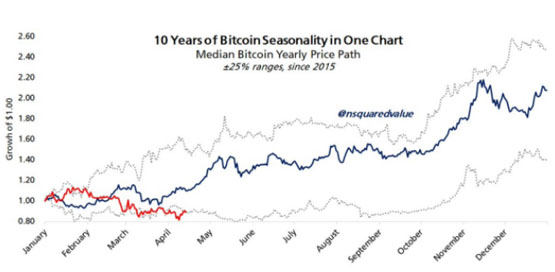 他在推文中指出:“一半日子在蓝线上方,一半在下方。而四月属于‘低于’类别。”