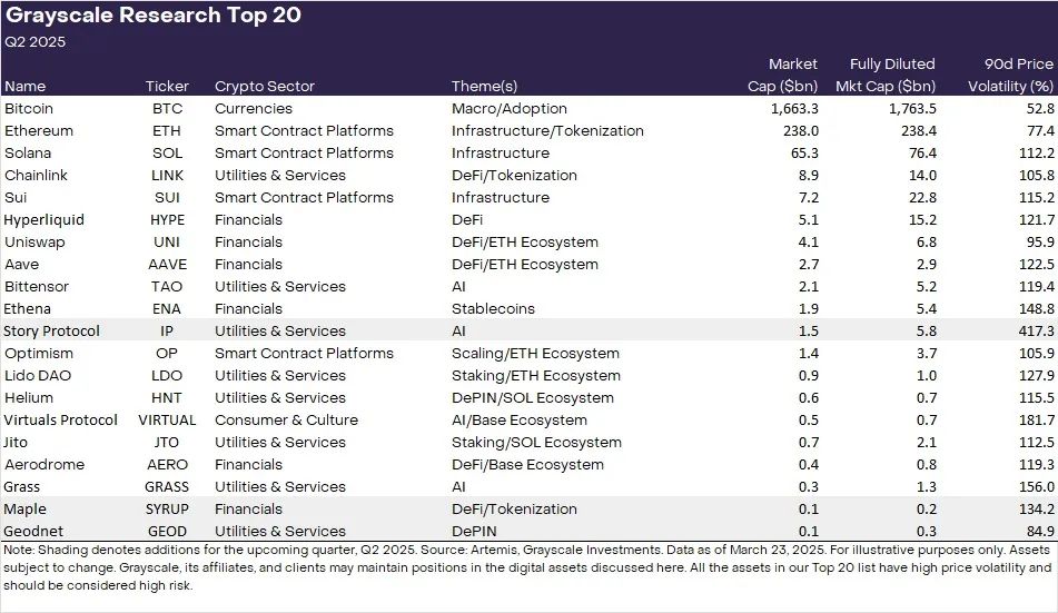 同时,具备强机构背书或明确政策支持的项目更具持续吸资优势。例如,灰度基金发布的2025年Q2 Top 20名单中,包含SYRUP、GEOD等实体应用型代币,显示机构正从被动持有转向主动引导市场方向。