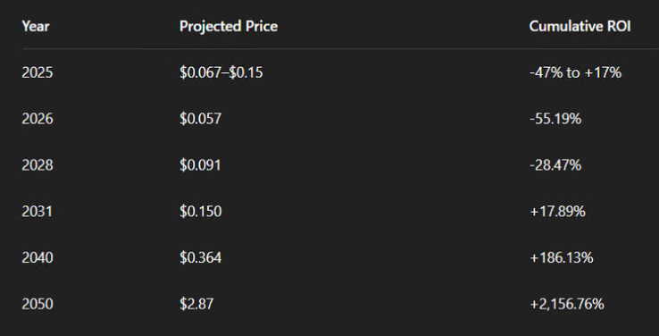 从长期视角看,若平台能实现与现实世界企业的深度整合,并持续推动技术升级,其价值有望稳步攀升。尽管当前仍属小众赛道,但其稳健的基础设施设计和明确的应用导向,使其成为追求“非迷因驱动”投资标的的理想选择。部分模型预测,到2050年,其价值可能达到2.87美元,前提是大规模采用与有利监管环境并行。