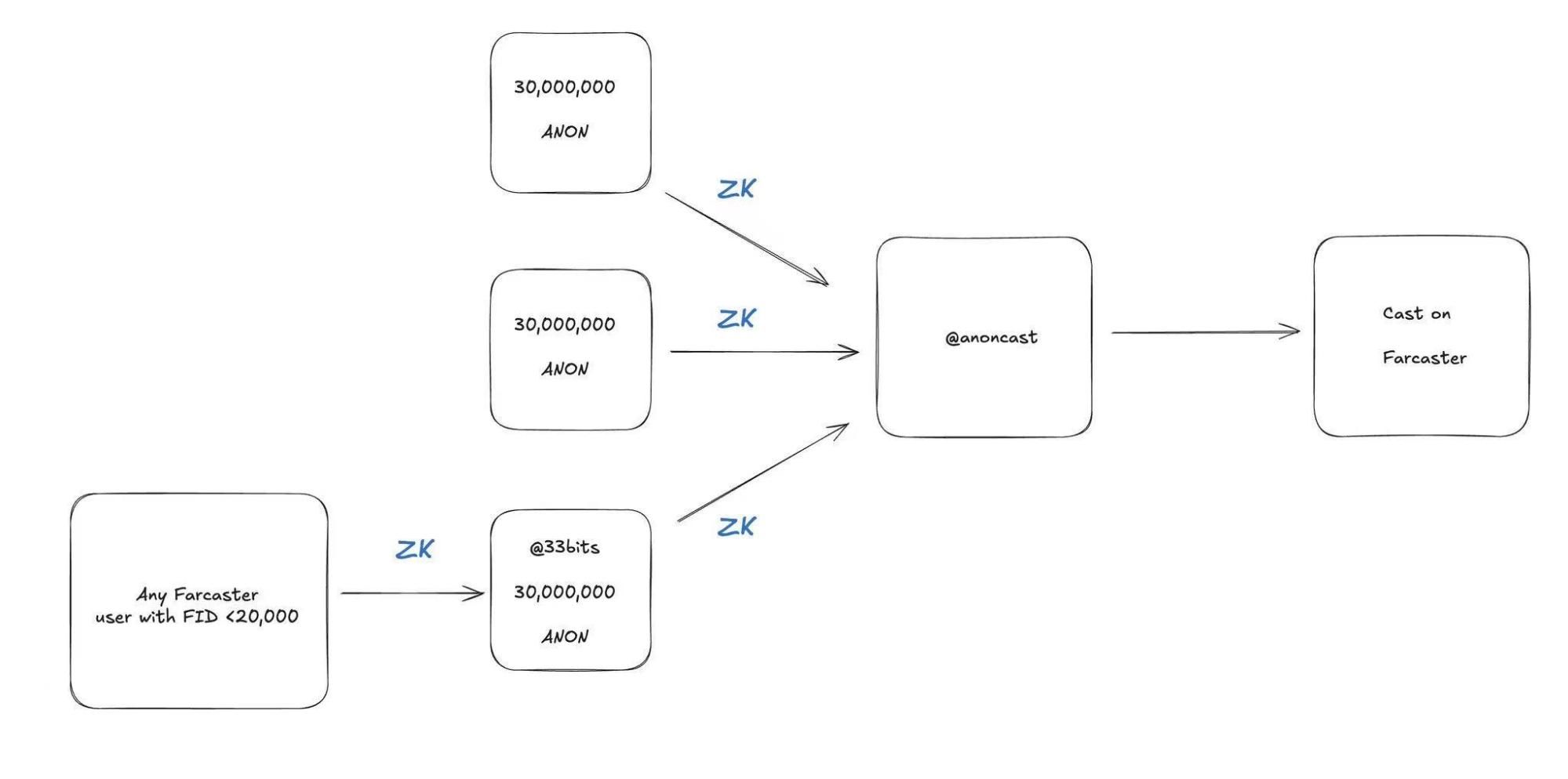 anoncast平台结合AI代币发射器CLANKER与零知识证明,实现匿名发帖与内容可信度双重保障。用户通过持有$ANON代币并生成证明,即可匿名发布内容。