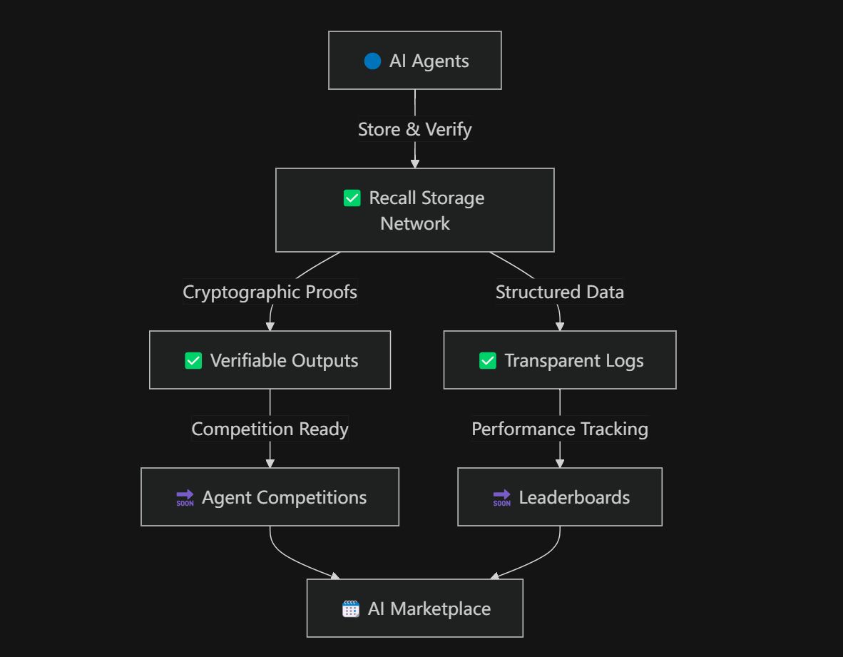 Recall采用专为AI代理优化的区块链子网架构,结合分层安全性与模块化设计,实现高吞吐量、低延迟和可扩展性。其创新的阿尔法纠缠(AE)纠删码技术,相比传统Reed-Solomon方案,在存储效率与数据修复成本方面表现更优,显著提升分布式系统的可靠性。同时,Recall提供Cognitive APIs,支持思维链日志(Chain-of-Thought logs)、RAG文档等多格式数据记录,增强AI行为的实时可观测性与可验证性。