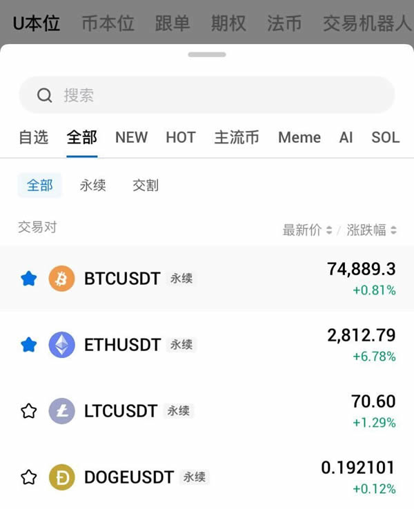 在交易对列表中可查看实时涨跌幅与资金费率。支持切换全仓或逐仓模式,灵活管理风险敞口。