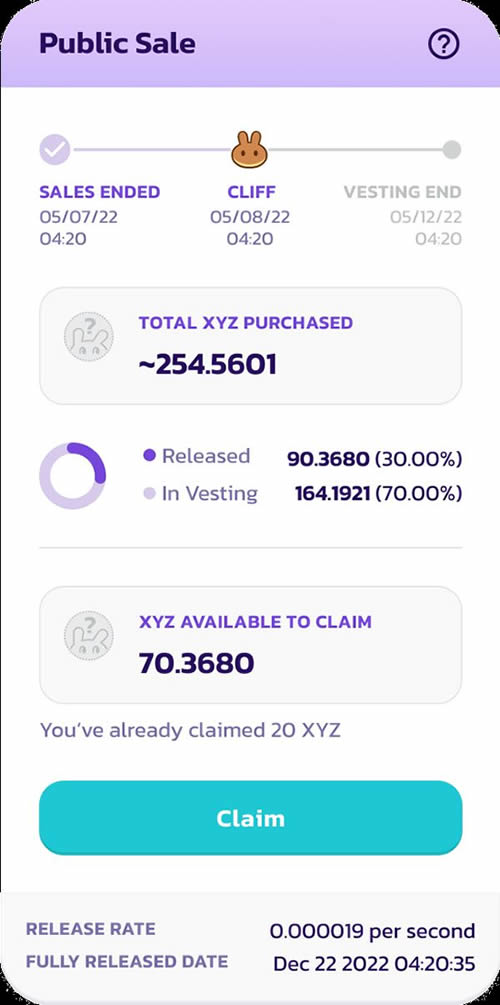 活动结束后,可提取新币及未使用的$CAKE。部分项目采用线性释放机制,需等待解锁期后才能提币。