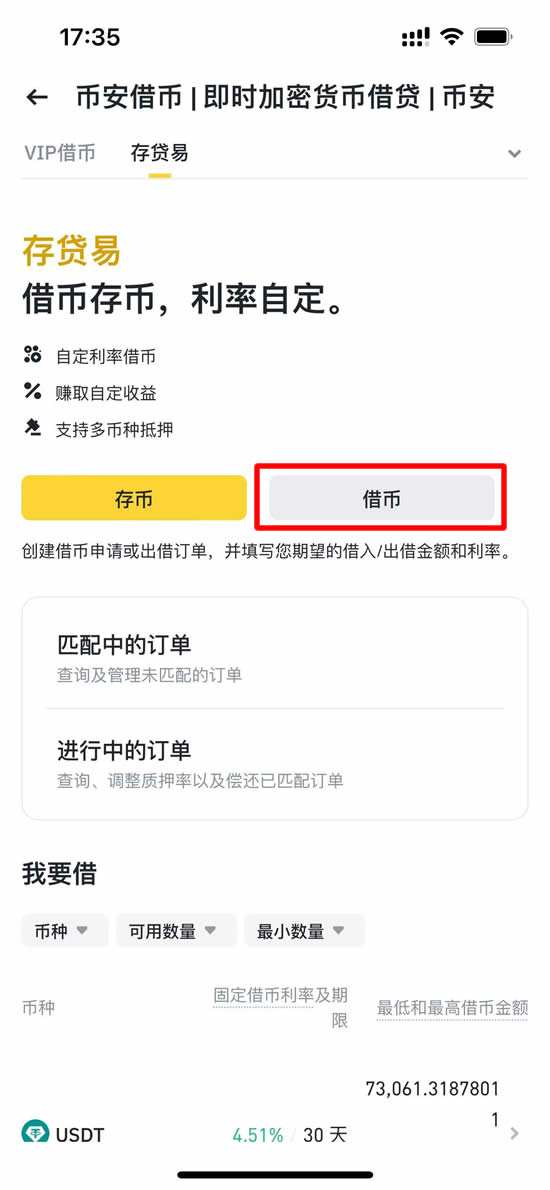 币安存贷易-借币方操作流程