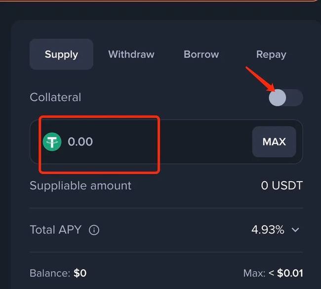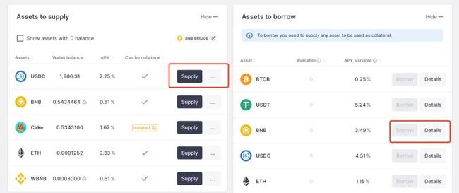 访问官网 app.aave.com,连接钱包后切换至BNB链。将USDC存入作为抵押品,再通过「Supply」功能锁定资产。随后进入「Borrow」界面,申请借出3BNB,建议初始抵押额不低于3000 USDC,防范因币价波动引发清算风险。