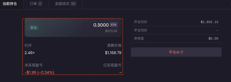 - 成功开仓后,在“当前持仓”查看盈亏与清算价格
