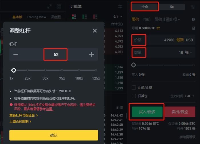 一张合约价值100美元,若开10张多单,则相当于做多1000美元市值的比特币。建议新手设置止损,并密切监控强平价格。