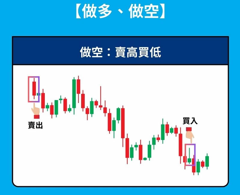 做空,又称放空或Short,指投资者预期价格下跌,先借入资产卖出,待价格回落后再低价买回归还,赚取价差利润。例如以$100卖出1张股票,当价格跌至$80时买回,便可获利$20。