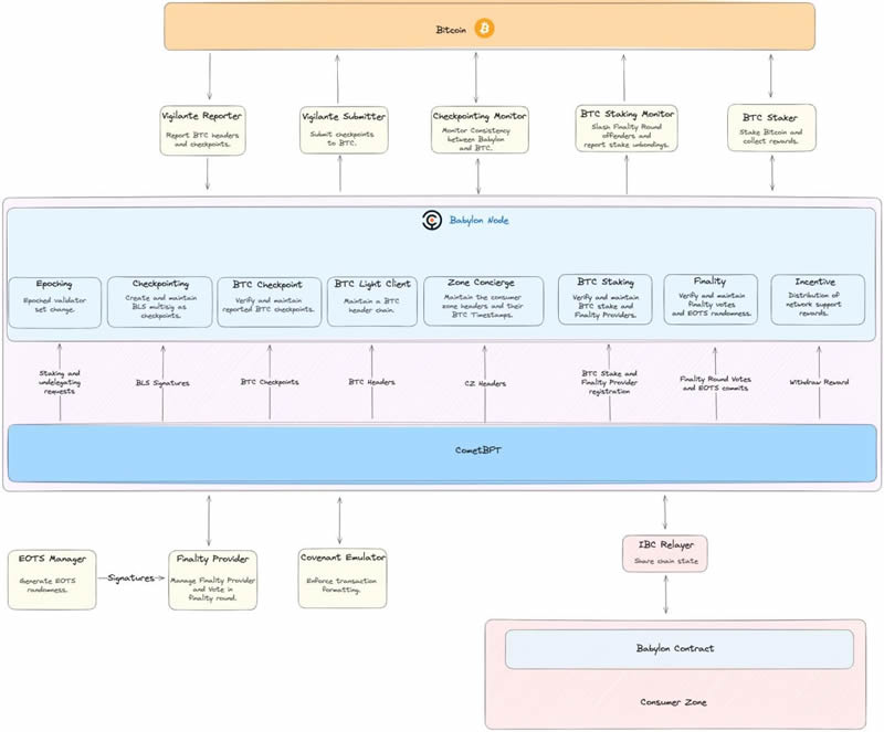 - Babylon链协调:中继者将质押信息传递至Babylon链,关联验证者与最终确认提供者(FPs)。