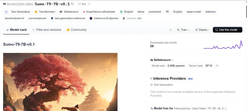 当前版本tensorplex-labs/Sumo-T9-7B-v0.1已在性能上超越TII Falcon 7B与Meta Llama-2-7b-hf,展现出强大的推理与生成能力,适用于智能合约解释、社区治理辅助等场景。