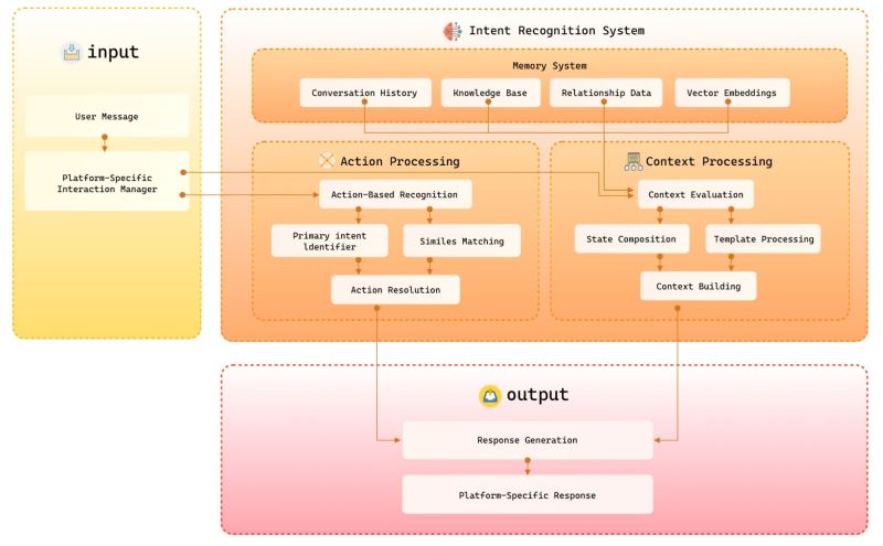 在ElizaOS中,代理是核心执行单元,具备记忆管理、状态维持与行动执行能力。它可在Discord、Twitter等平台持续对话并保持行为一致性,真正实现长期协作。角色档案(Character Files)
