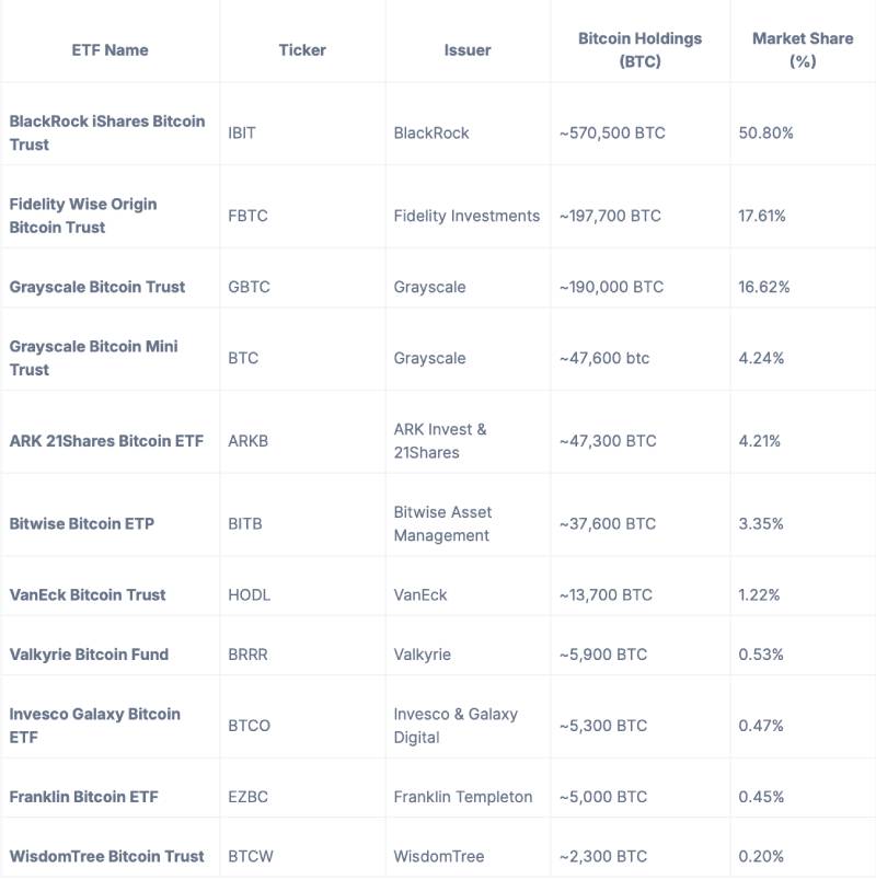 BlackRock、Fidelity、ARK Invest、VanEck等巨头相继推出产品,形成激烈竞争格局。截至2025年,多家机构已成功发行比特币现货ETF。