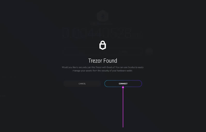1. 断开其他程序运行,打开Exodus并用USB连接Trezor Model T。