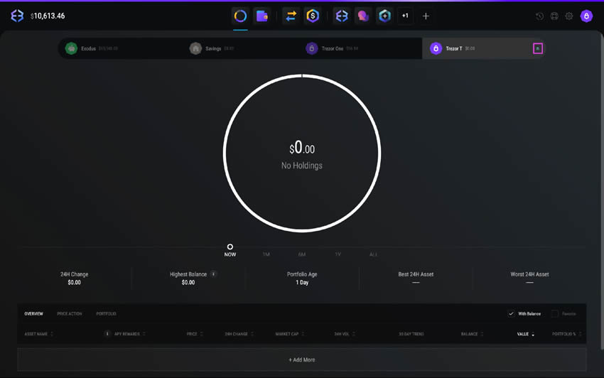 3. 配置完成后,Trezor将作为独立资产组合出现在Exodus桌面端。