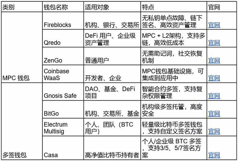 - MPC 钱包:适合注重隐私、安全性与效率的企业级应用,如机构托管、高频交易、个人资产保护。