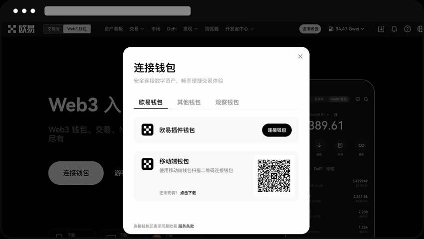 下载欧易官方app,切换至【Web3钱包】,选择【创建钱包】,设置密码并妥善备份助记词。已有钱包的用户可使用助记词或私钥导入,实现跨链资产统一管理。