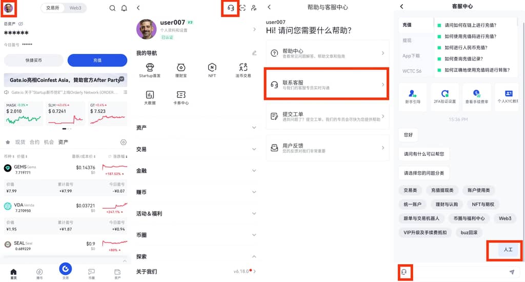 App端:点击首页左上角头像 → 导航页 → 右上角“耳机”图标 → 选择“联系客服” → 输入“人工”触发人工服务。