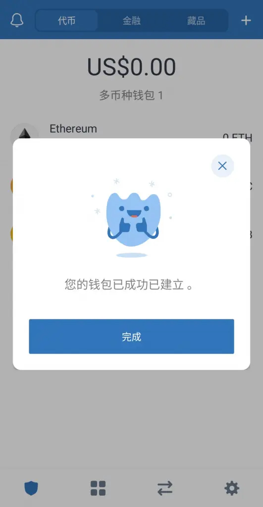 完成备份后,按提示输入助记词进行验证,即可成功登录钱包。