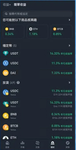 聚合主流DeFi协议,提供质押、借贷等收益工具。用户可在界面内直接参与流动性挖矿或借出资产获取利息,降低操作门槛,推动资产利用率提升。