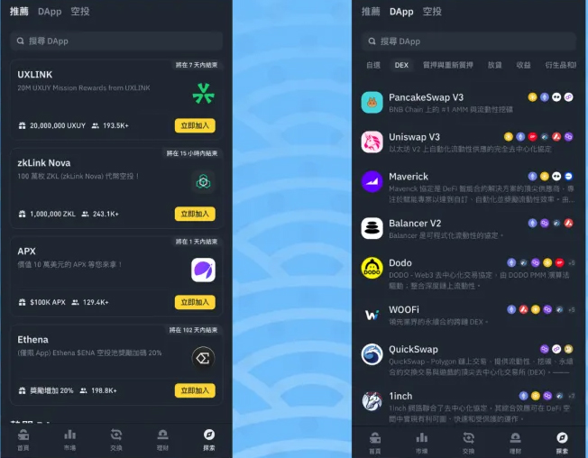内置DApp聚合入口,涵盖DeFi、NFT市场、游戏、社交平台与空投项目。用户无需跳转外部平台,即可在钱包内直接连接知名应用,拓展链上使用场景。