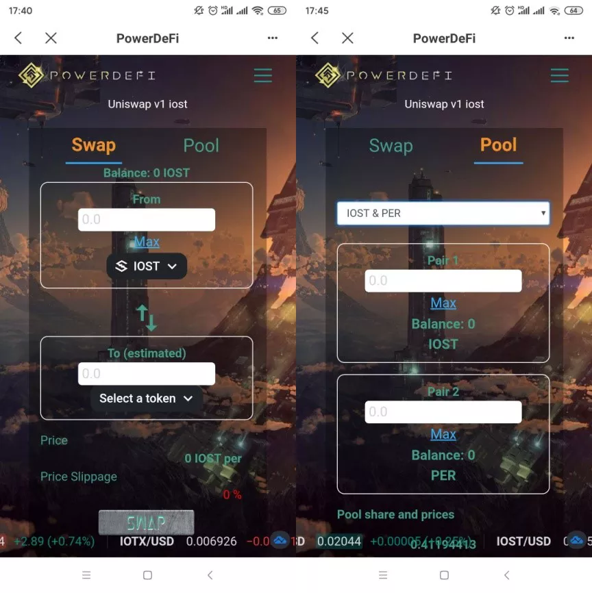 PowerDeFi是基于IOST区块链构建的一站式去中心化金融平台,集Uniswap交易、借贷服务、永续合约与质押挖矿四大核心功能于一体。用户需通过TokenPocket钱包完成账户创建或导入后,即可访问该平台。